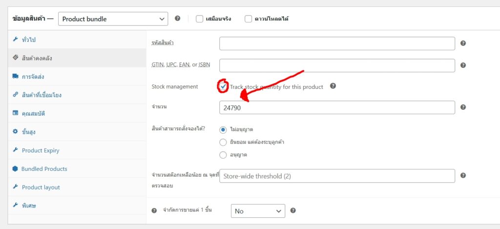 - ติ๊กช่อง : Track stock quantity for this product
